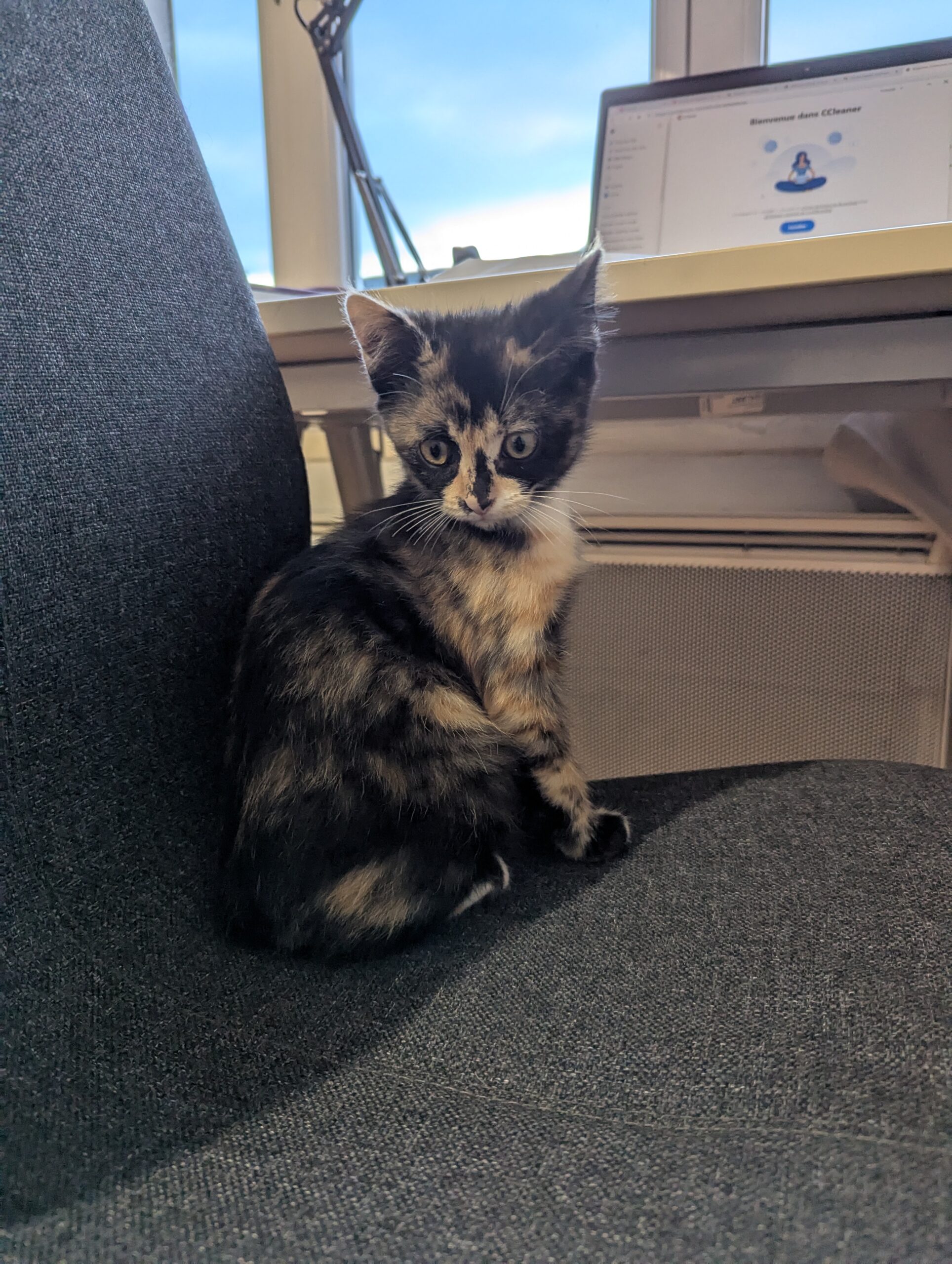 Gipsy est une jeune femelle , écaille de tortue qui est née  approximativement  autour du 1er octobre 2024. Elle a été trappée avec ses 3 chatons .