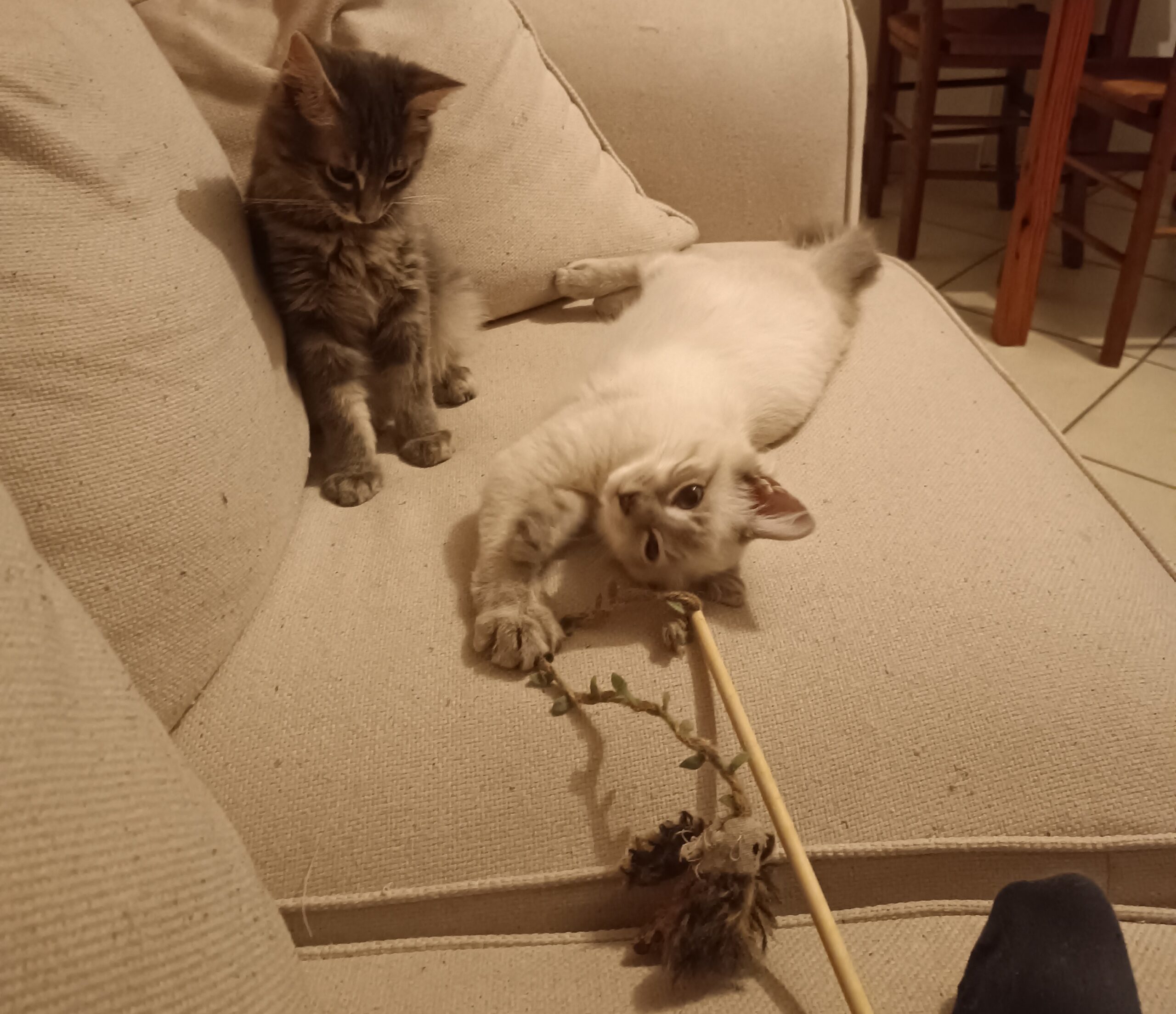 Elle aime beaucoup jouer avec ses copains (une famille avec des chats déjà présents est préférable).