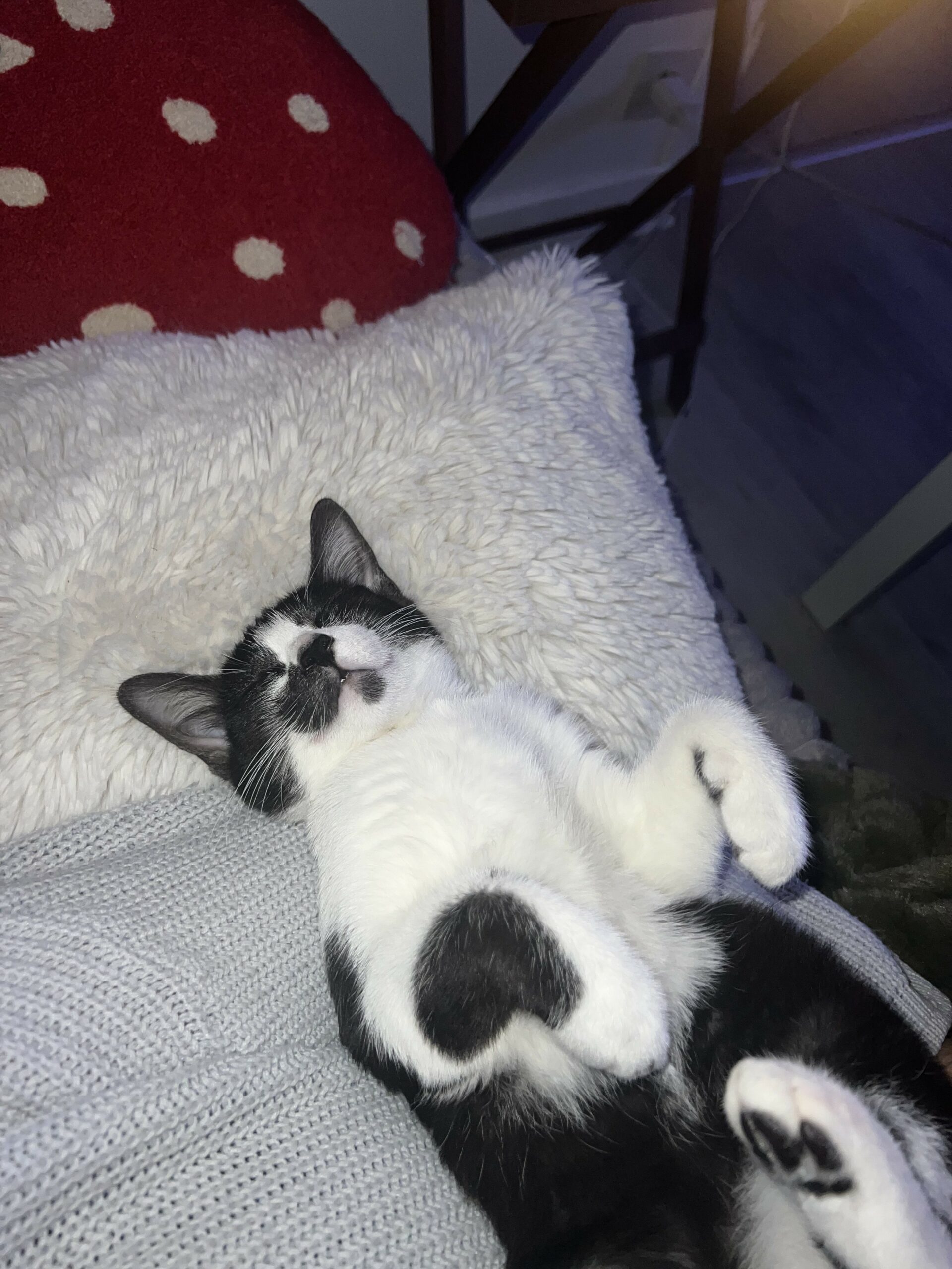 Il a depuis été adopté et mène une vie de câlins et de bonheur avec un copain chat et sa famille d’adoption.