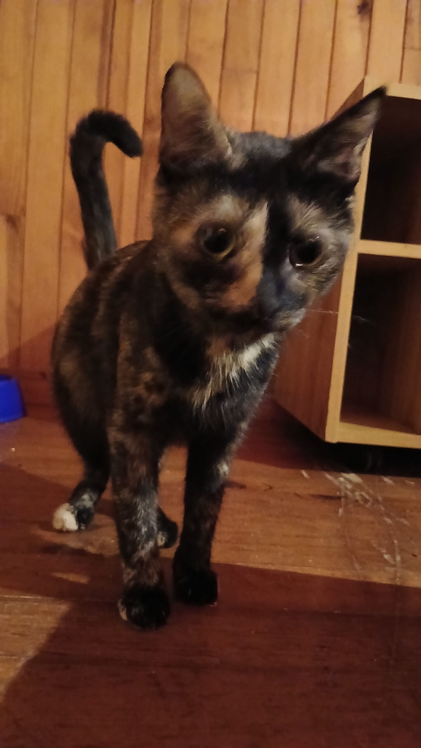 Gipsy est une jeune femelle , écaille de tortue qui est née  approximativement  autour du 1er octobre 2024. Elle a été trappée avec ses 3 chatons .