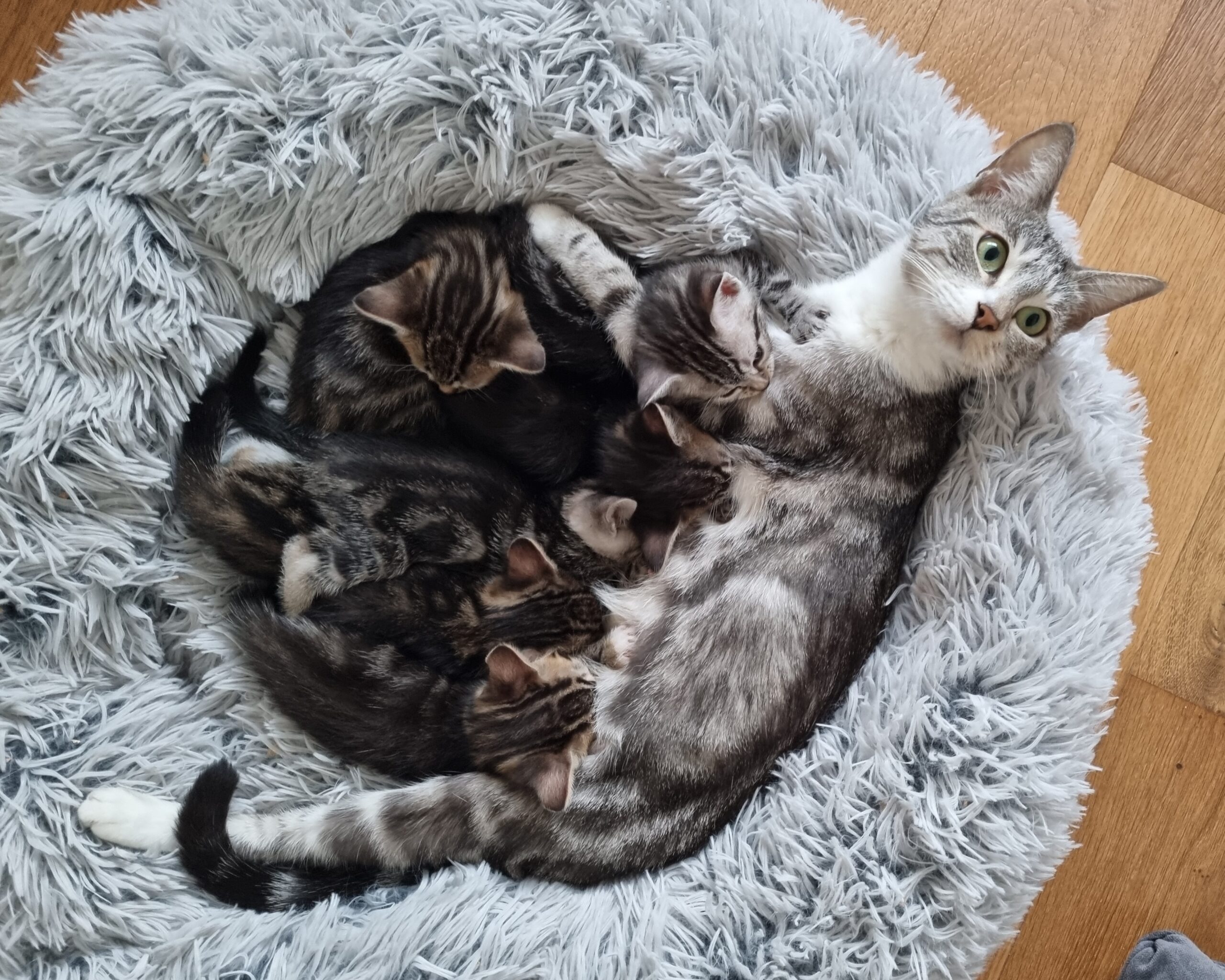 Quand elle a été adoptée, j’en ai pleuré. Ce petit trésor rescapé allait me manquer. Ses ronrons super forts et ses courses poursuites avec mes chats... son pelage tout doux et fascinant... sa petite tête expressive... Mais tel est le job de famille d’accueil...