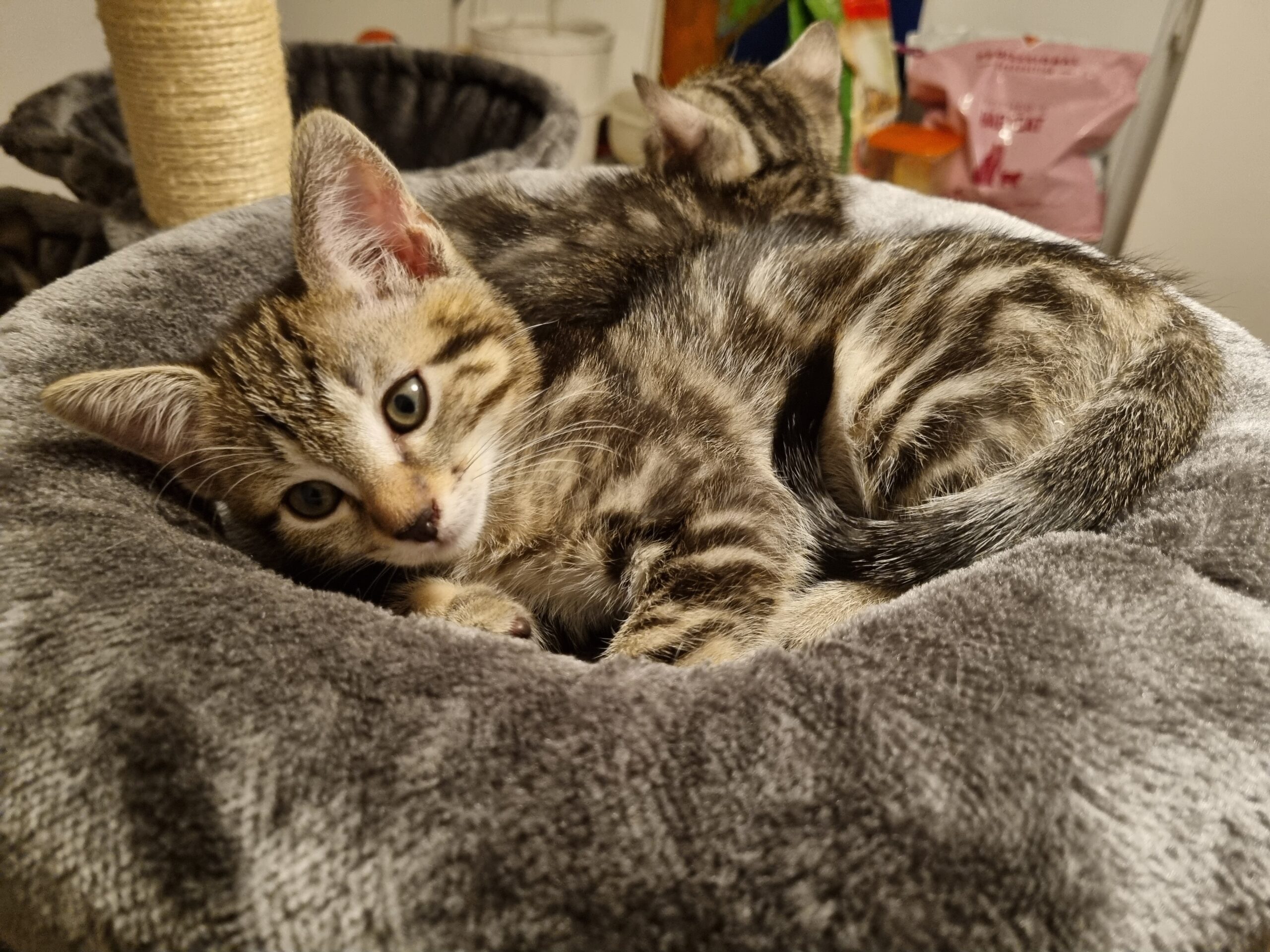 Gipsy est une jeune femelle , écaille de tortue qui est née  approximativement  autour du 1er octobre 2024. Elle a été trappée avec ses 3 chatons .