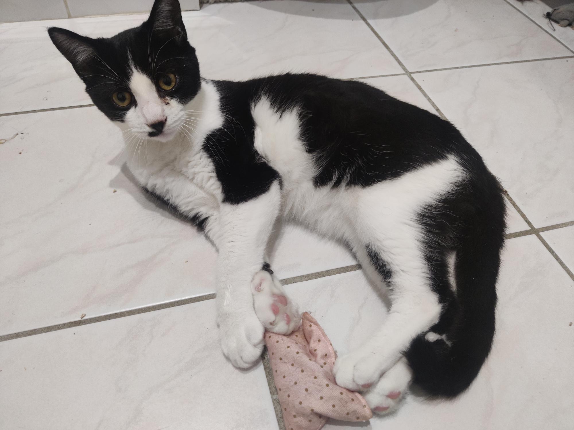 Elle aime beaucoup jouer avec ses copains (une famille avec des chats déjà présents est préférable).