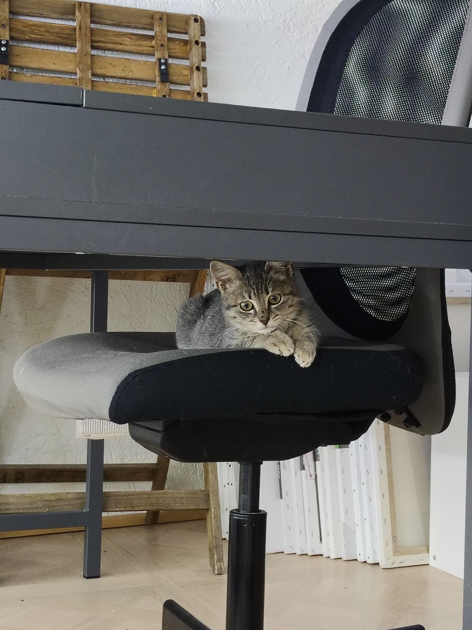 Mise en sécurité rapidement, elle est arrivée toute timide, ne semblant pas connaitre le confort d’une maison. Elle a dormi à même le sol les premiers jours, avant de se rendre compte que le coussin serait plus confortable, et plus longtemps encore avant d’oser monter sur le canapé.