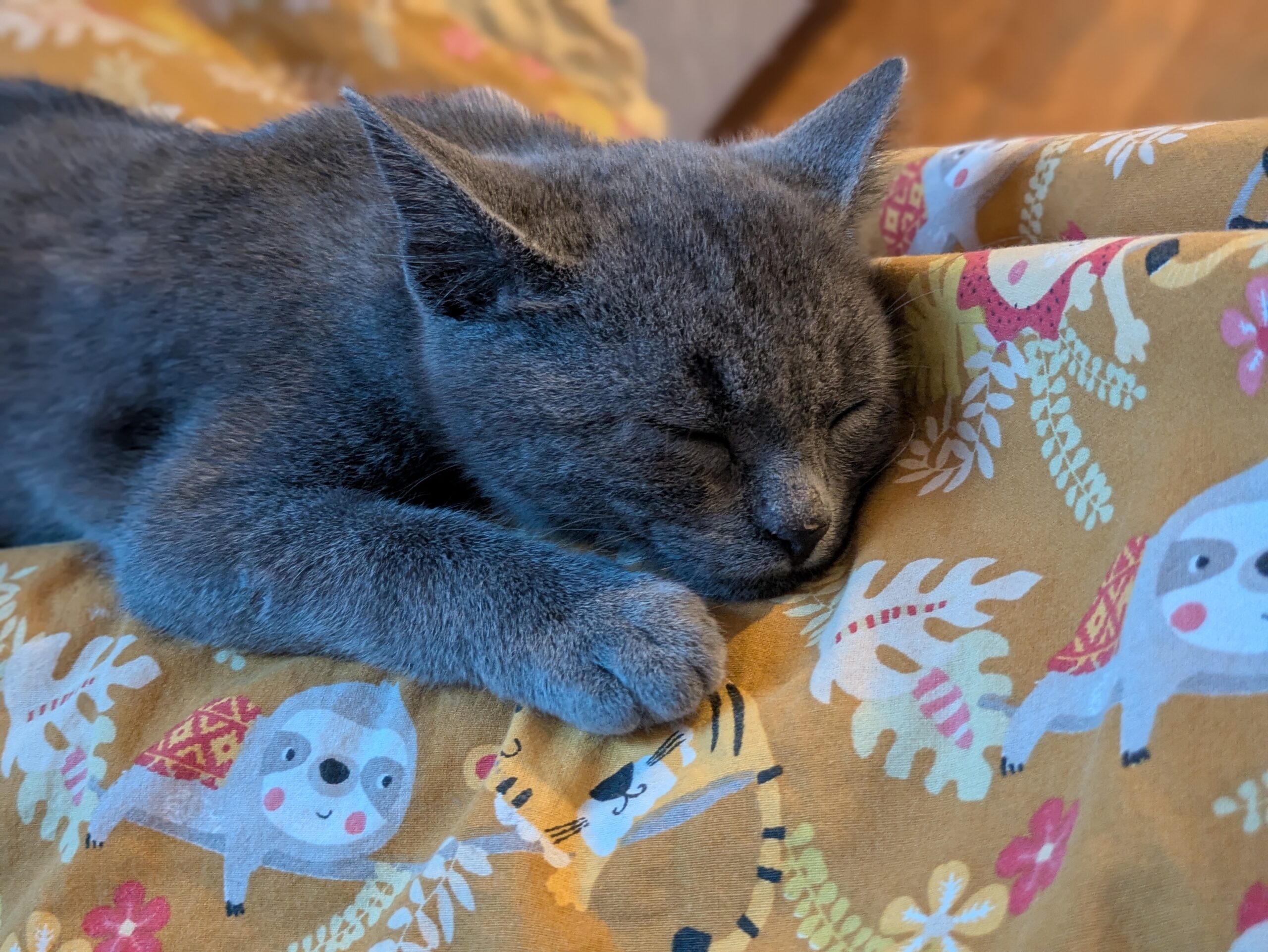 Elle est assez calme, contrairement à pas mal de chats ce n’est pas une « grimpeuse » (en tout cas pour l’instant !).