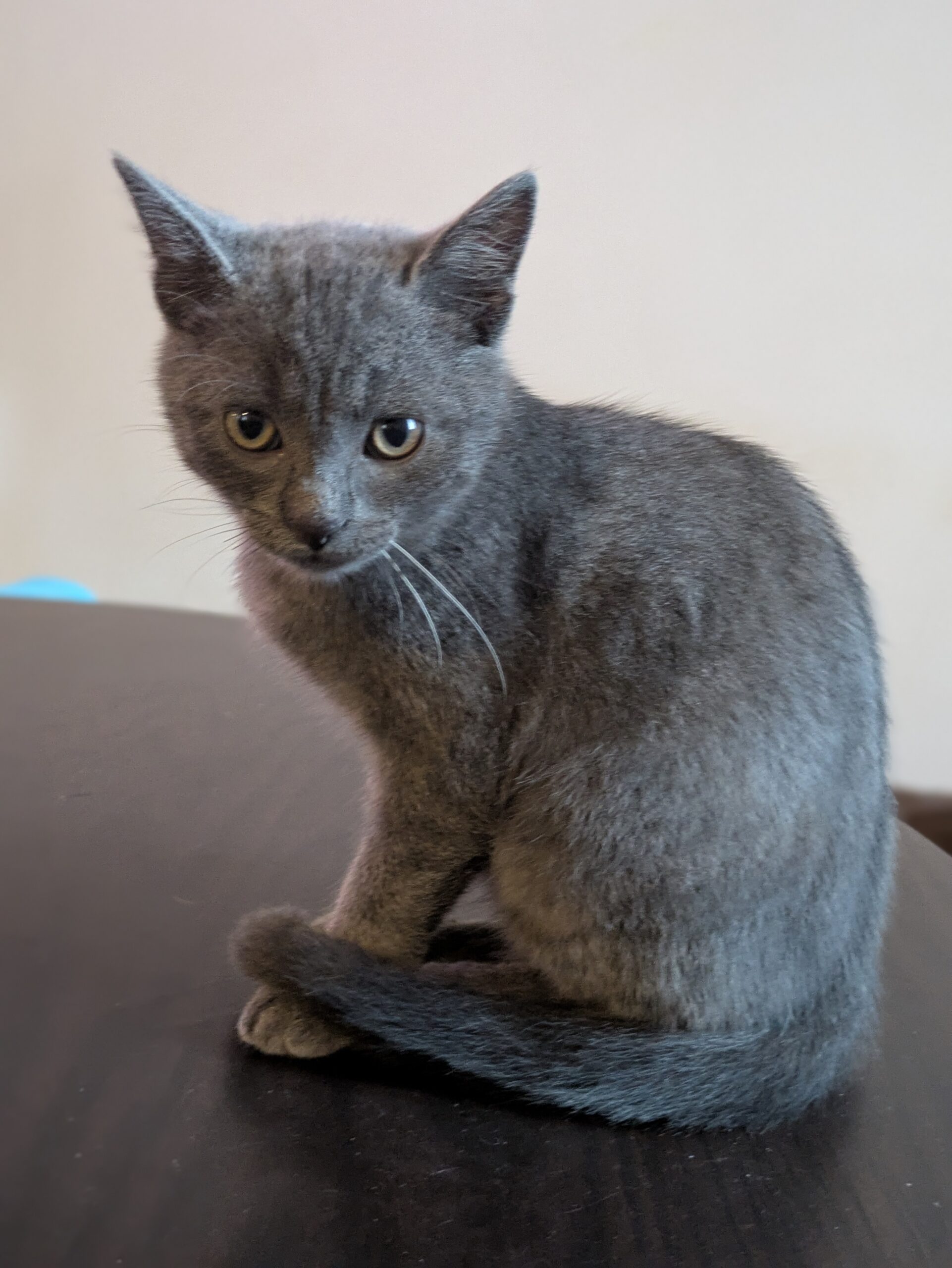 J’ai été trouvé et heureusement mis à l’abri du froid car j’étais tout petit et craintif. Maintenant Je suis un petit chaton qui découvre tout, aime tout voir, joue énormément et avec tous. Du jouet chat à un bouchon, au chouchou cheveux. Tous et un jouer pour moi et j’adore jouer.