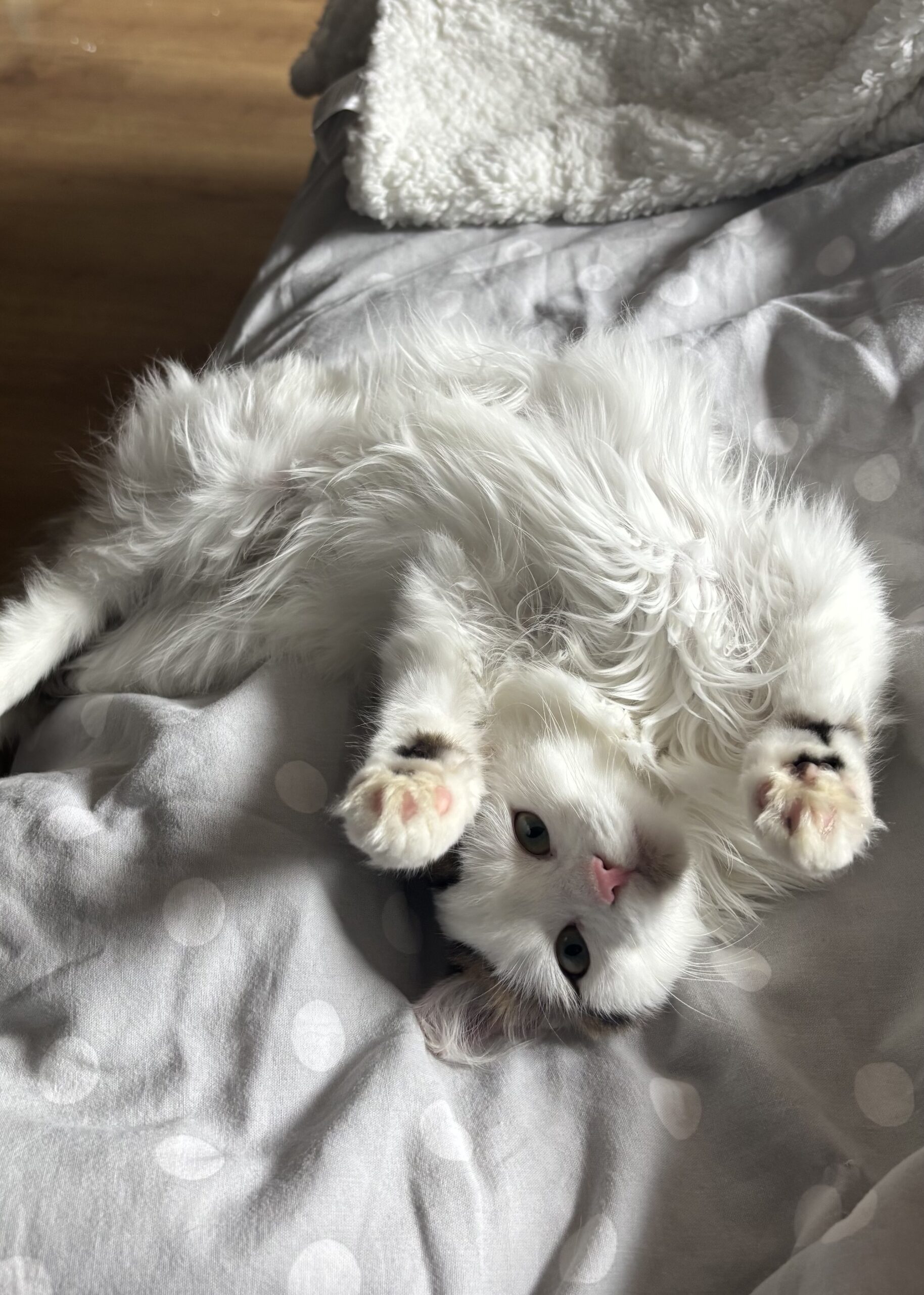 C’est une chatte qui a besoin d’indépendance mais saura vous apprivoiser avec le temps, vous faire un bel accueil et vous faire rire par ses différentes postures et réactions !