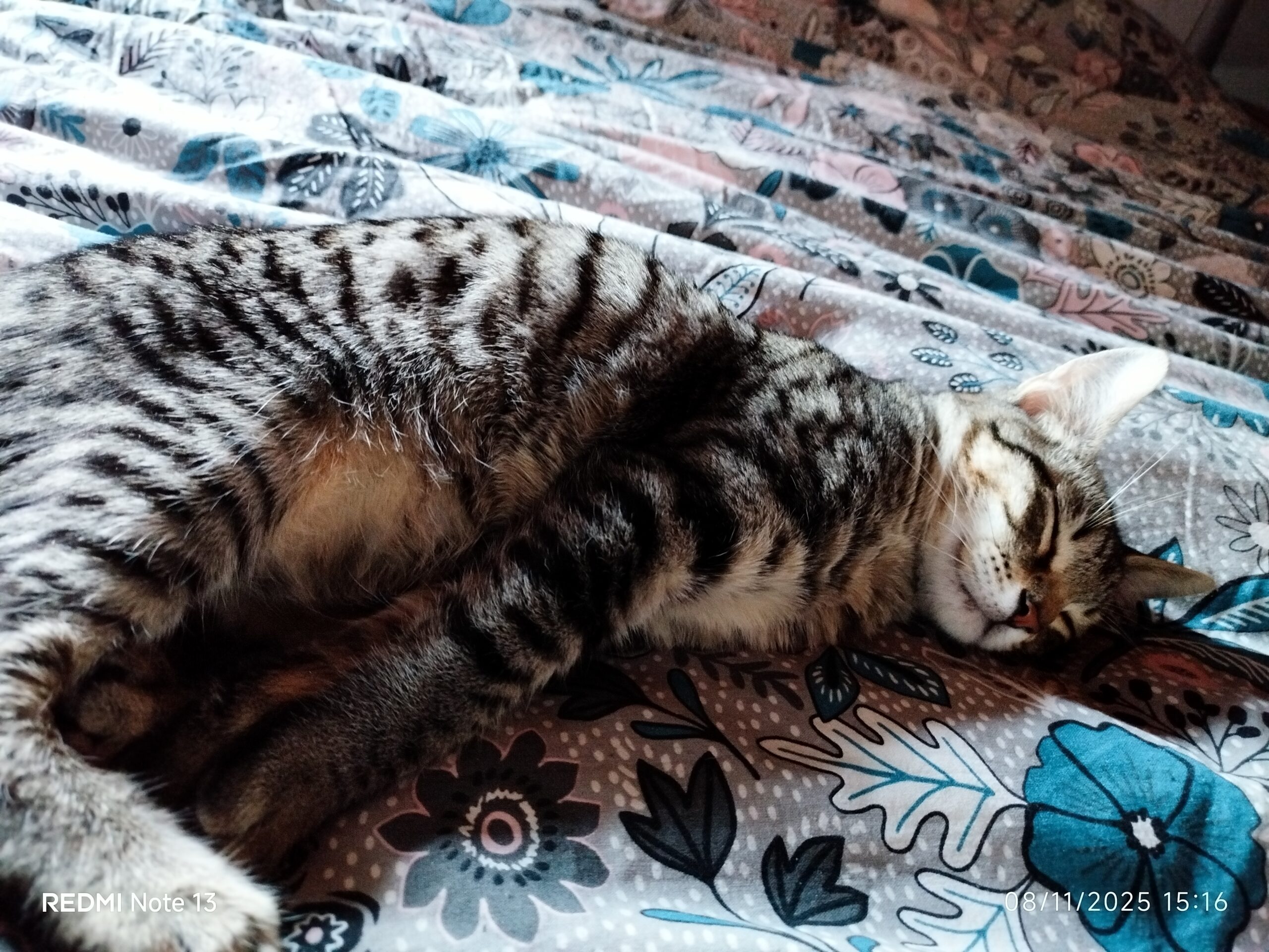 Elle est assez calme, contrairement à pas mal de chats ce n’est pas une « grimpeuse » (en tout cas pour l’instant !).