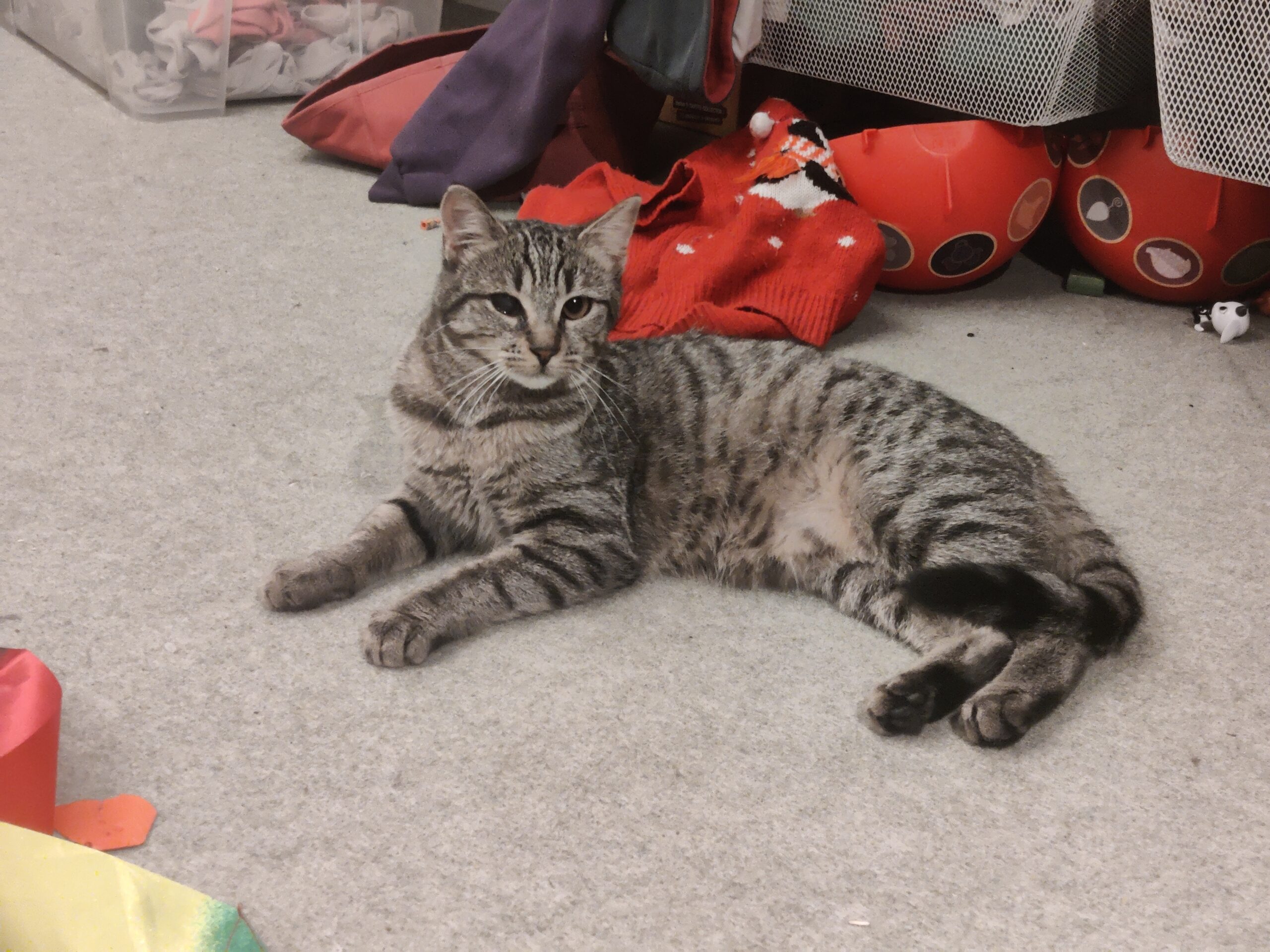 J’ai été trouvé et heureusement mis à l’abri du froid car j’étais tout petit et craintif. Maintenant Je suis un petit chaton qui découvre tout, aime tout voir, joue énormément et avec tous. Du jouet chat à un bouchon, au chouchou cheveux. Tous et un jouer pour moi et j’adore jouer.