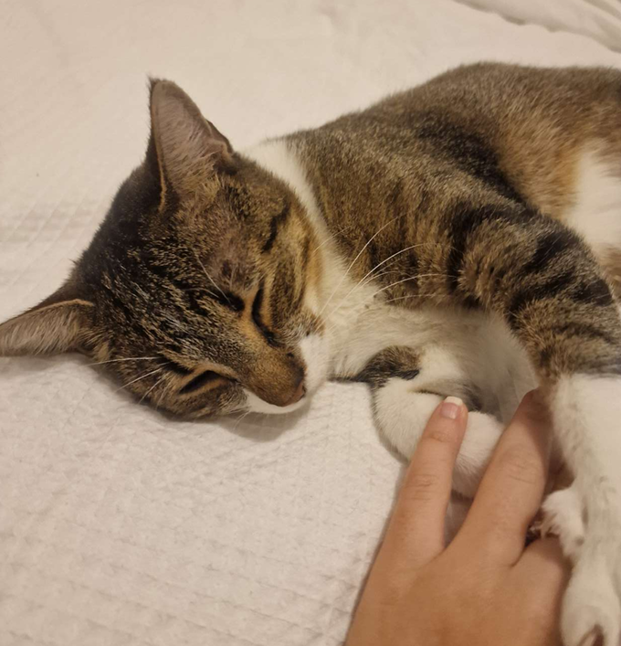 Bali est un chat marqué psychologiquement et physiquement par la vie difficile dans la rue. Mais il est très sociable, en demande d’attention et de câlins 😻.
