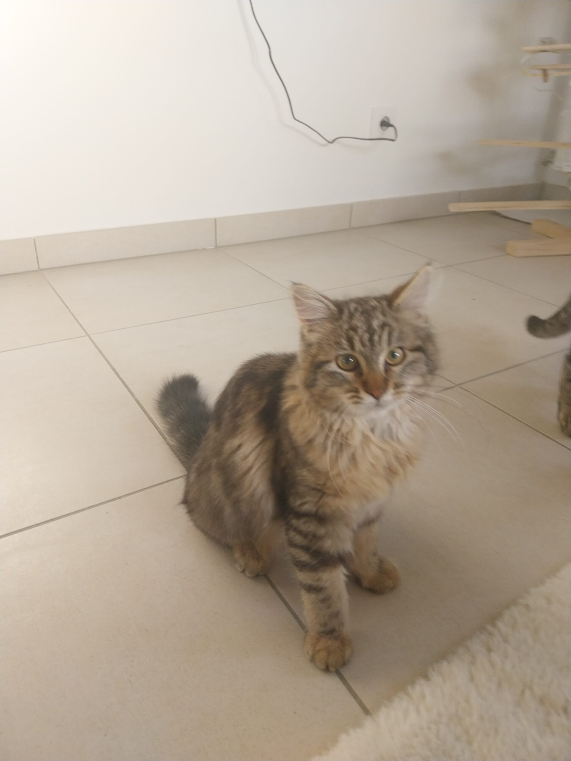 Elle est assez calme, contrairement à pas mal de chats ce n’est pas une « grimpeuse » (en tout cas pour l’instant !).