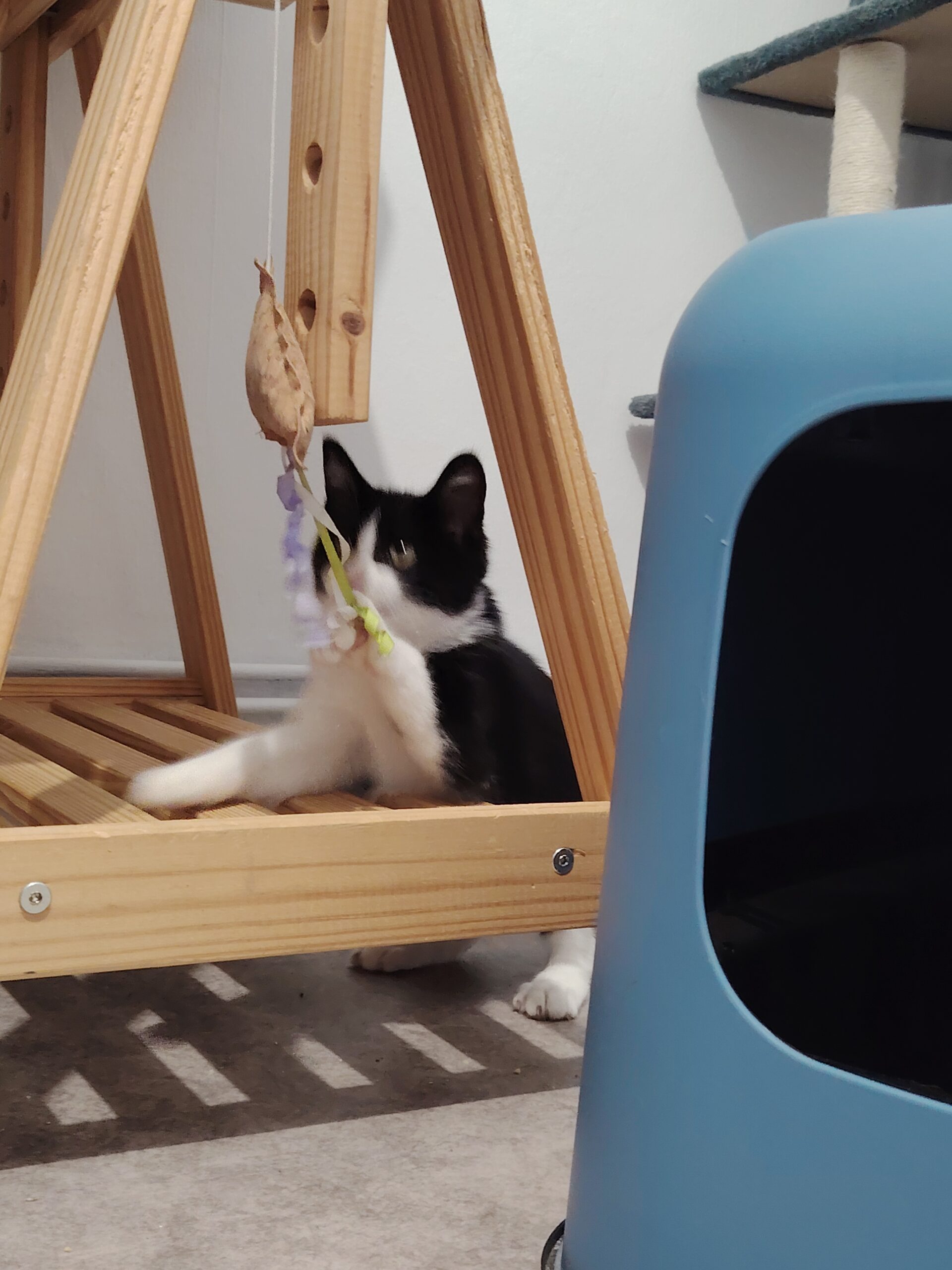 J’ai été trouvé et heureusement mis à l’abri du froid car j’étais tout petit et craintif. Maintenant Je suis un petit chaton qui découvre tout, aime tout voir, joue énormément et avec tous. Du jouet chat à un bouchon, au chouchou cheveux. Tous et un jouer pour moi et j’adore jouer.
