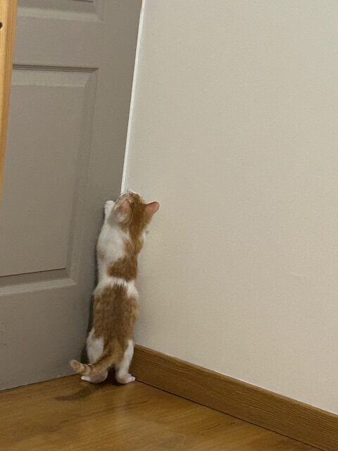 Aussi, elle a hâte d’aller dehors pour explorer et chasser sans doute les souris !