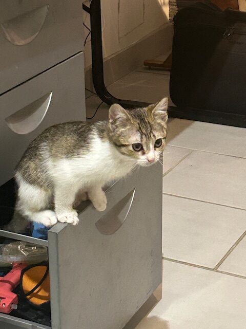 Aussi, elle a hâte d’aller dehors pour explorer et chasser sans doute les souris !