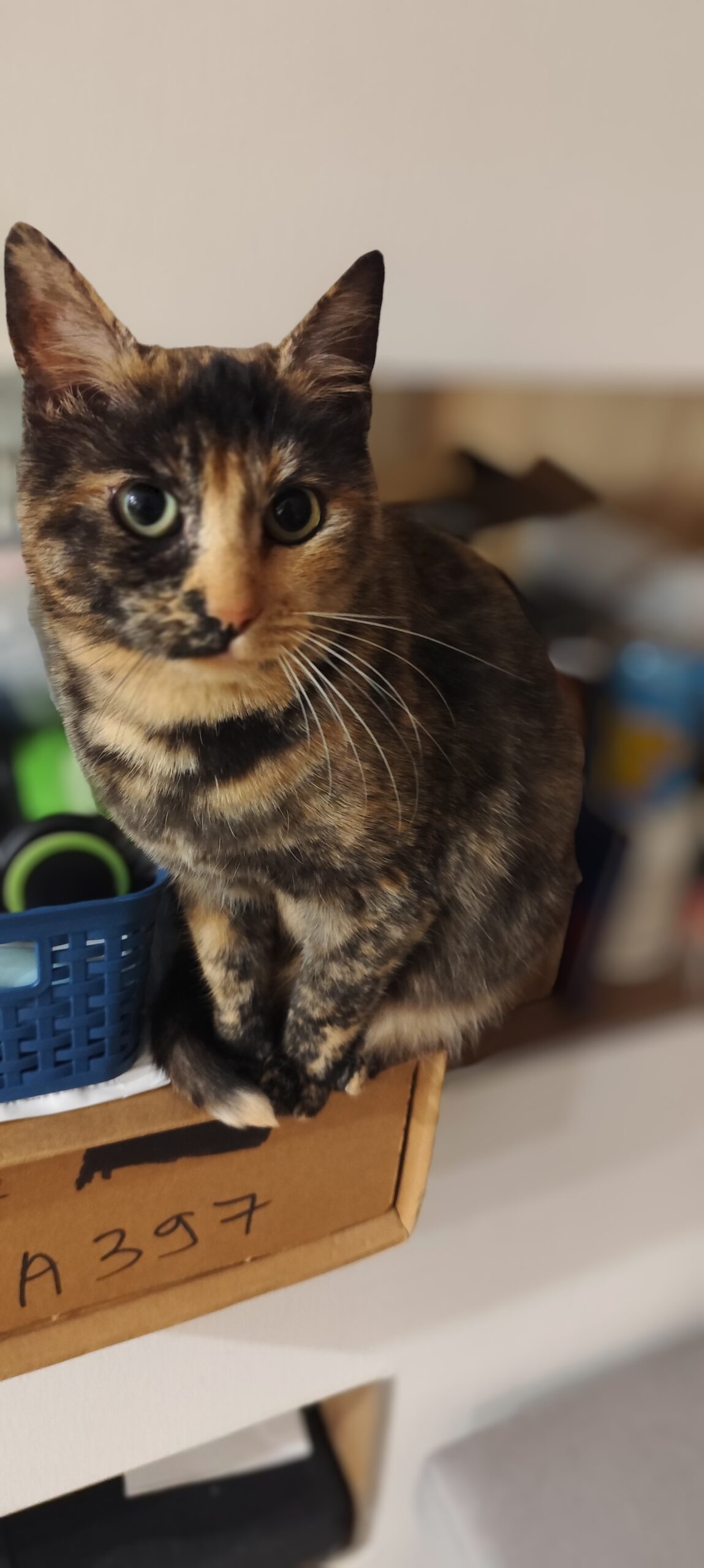 Noumy est une chatte d’un an au pelage écaille Noumy est une chatte d’un an au pelage écaille de tortue.