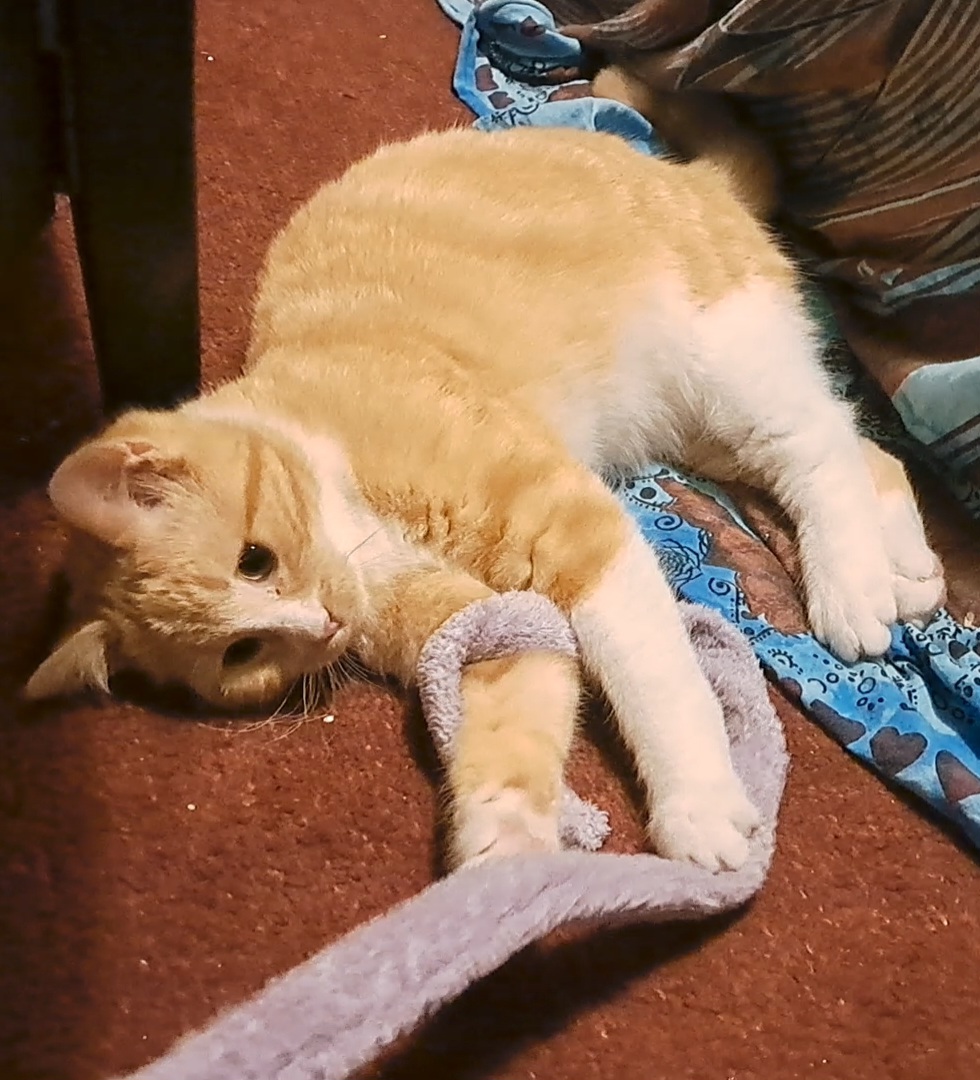 Ash au contraire est un peu plus réservé et un peu distant face à l’humain. Il accepte petit à petit d’être caressé et apprécie une main chaude et douce qui le rassure. Il faudra être patient avec lui et il prendra confiance sans problème 🙂