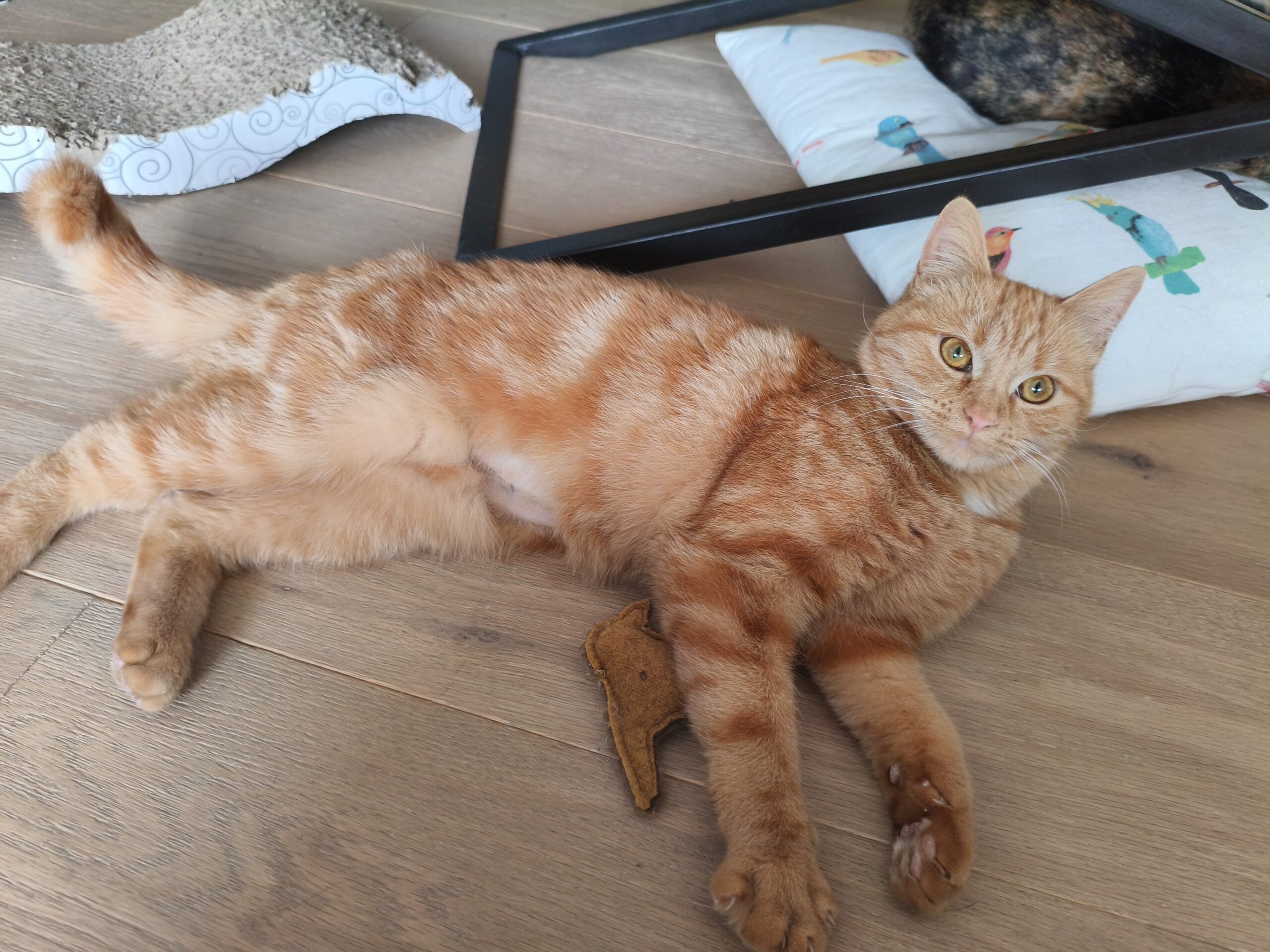 Les caresses restent encore quelque chose qu’il n’accepte pas par peur mais cela ne l’empêche pas de venir se frotter aux jambes, se rouler juste à côté tout en ronronnant.