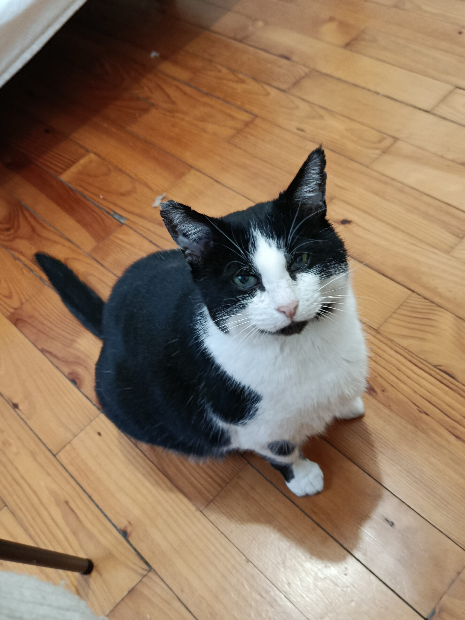 C’est un chat qui a mis un peu de temps à s’habituer à la présence humaine, bien qu’il ait été toujours curieux et ne s’est jamais caché.