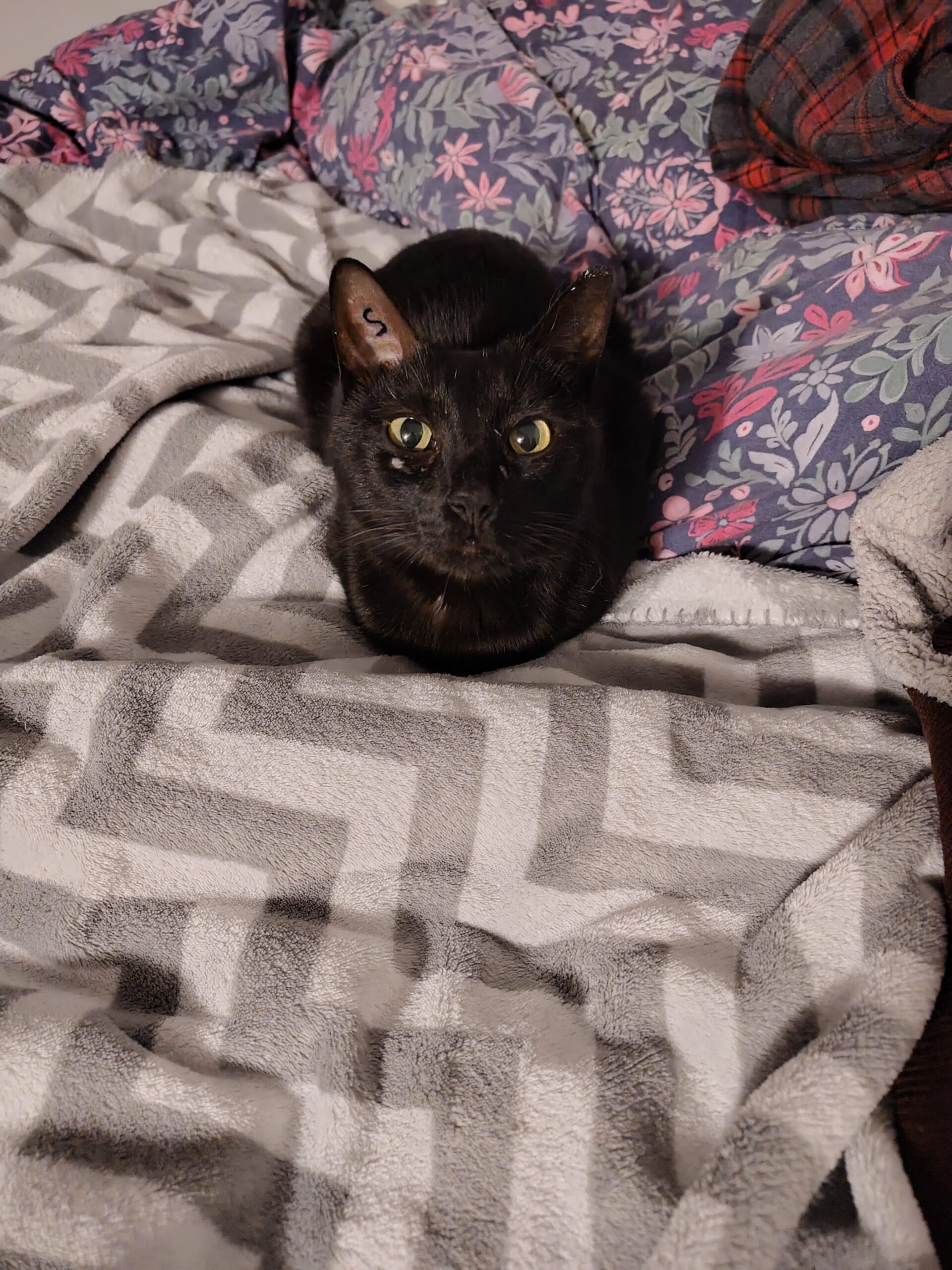 Moka née le 18/07/2024, femelle type européenne toute noire (petite tache blanche au cou)