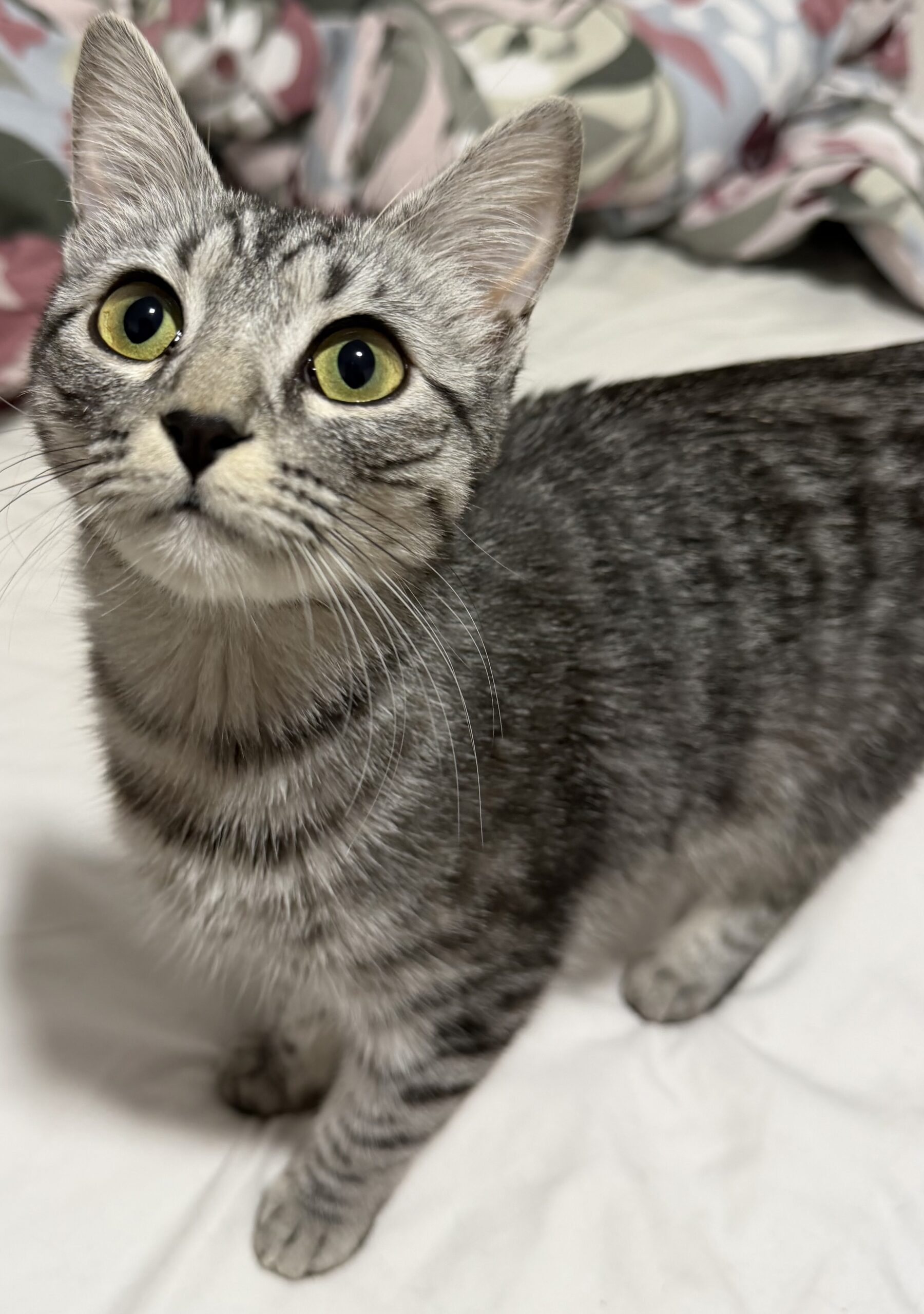 Une fois que vous l’avez ? Vous découvrirez un chat joueur et curieux, pro de la chasse aux boulettes de papier et de l’attaque acrobatique de fil, qui vous émerveillera de moult mouvements d’art martiaux de sa création. Une fois fatigué de ses prouesses, il aime dormir contre les jambes bien au chaud sur le lit. Il vient de découvrir le bonheur des caresses et s’y habitue encore (il faut y aller doucement et lui laisser le temps) mais en demande de plus en plus!