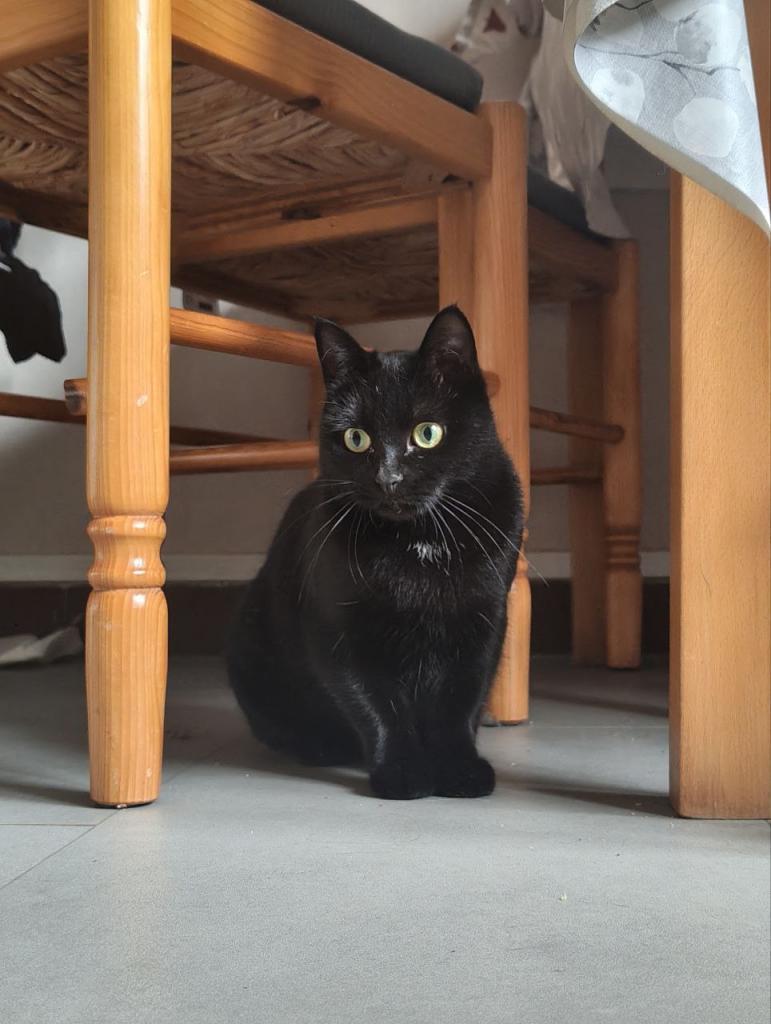 Une fois que vous l’avez ? Vous découvrirez un chat joueur et curieux, pro de la chasse aux boulettes de papier et de l’attaque acrobatique de fil, qui vous émerveillera de moult mouvements d’art martiaux de sa création. Une fois fatigué de ses prouesses, il aime dormir contre les jambes bien au chaud sur le lit. Il vient de découvrir le bonheur des caresses et s’y habitue encore (il faut y aller doucement et lui laisser le temps) mais en demande de plus en plus!