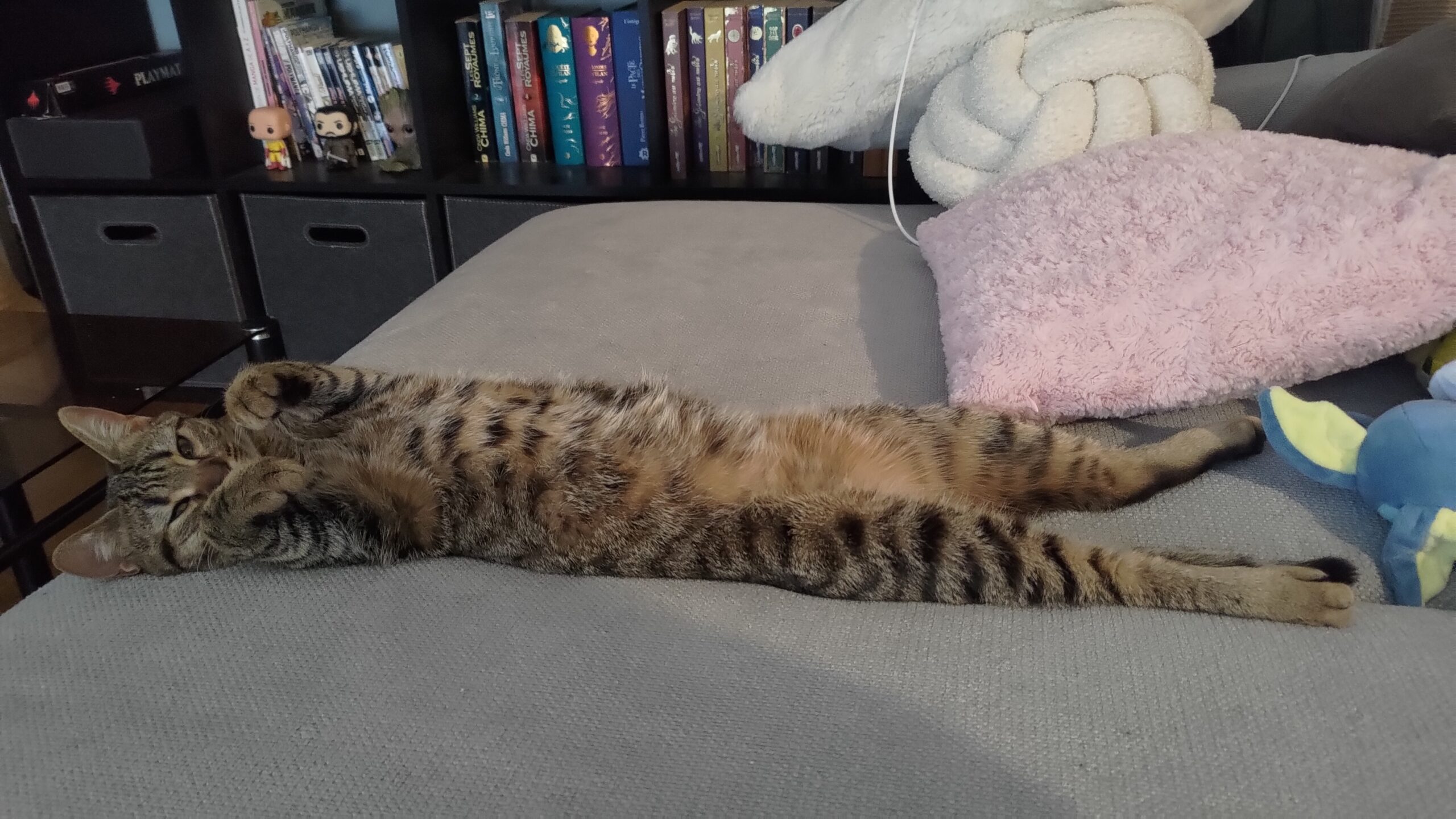 Aujourd’hui, Médusa est devenue une vraie accro aux câlins. Elle tient absolument à avoir ses caresses dès que moi, son humaine, je passe la porte, toujours au même endroit, sur “son fauteuil”. Elle reste très ritualisée sur les lieux et les moments, mais ensemble nous avons construit une relation forte et rassurante pour nous deux !