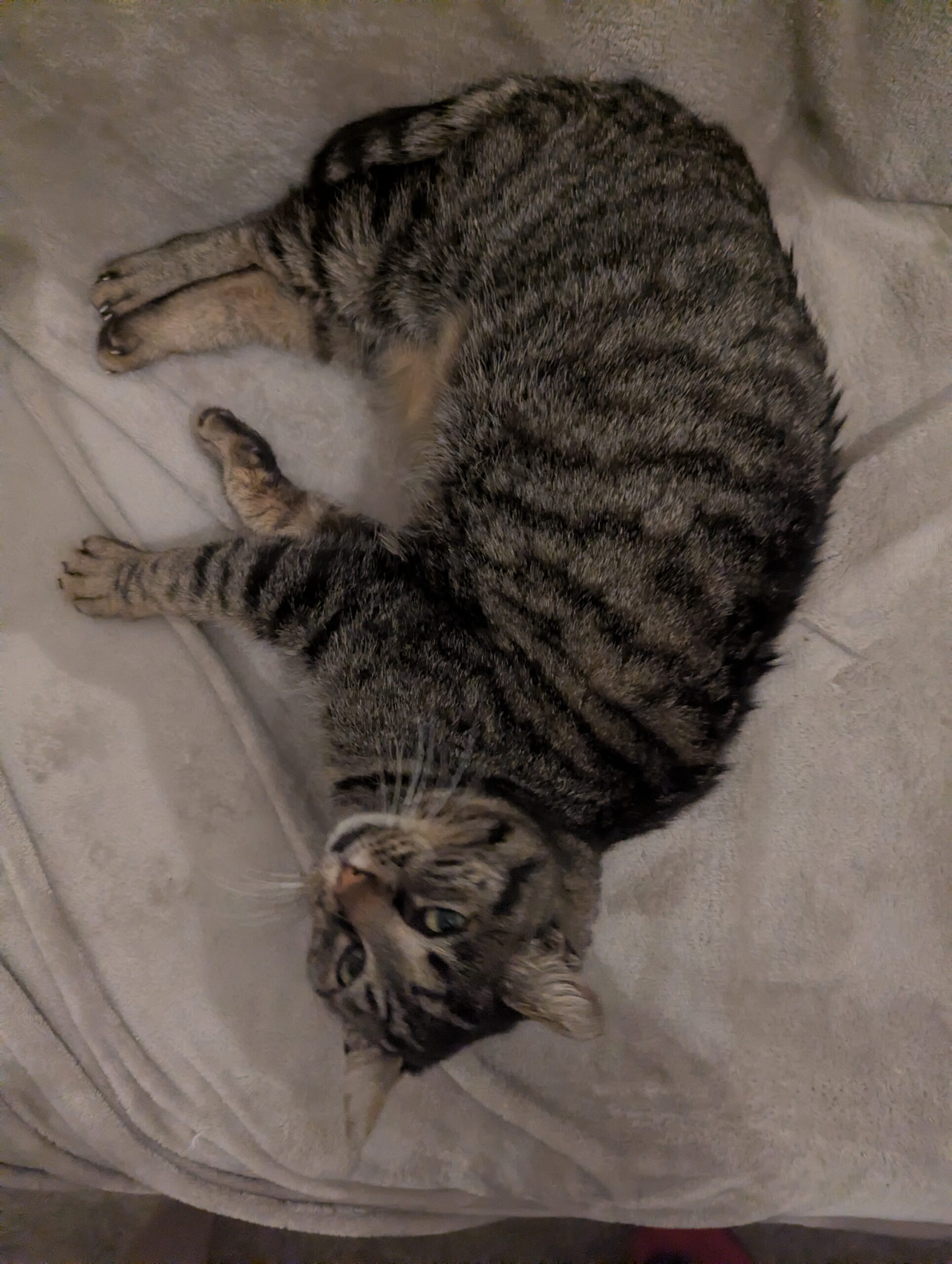 Une fois que vous l’avez ? Vous découvrirez un chat joueur et curieux, pro de la chasse aux boulettes de papier et de l’attaque acrobatique de fil, qui vous émerveillera de moult mouvements d’art martiaux de sa création. Une fois fatigué de ses prouesses, il aime dormir contre les jambes bien au chaud sur le lit. Il vient de découvrir le bonheur des caresses et s’y habitue encore (il faut y aller doucement et lui laisser le temps) mais en demande de plus en plus!