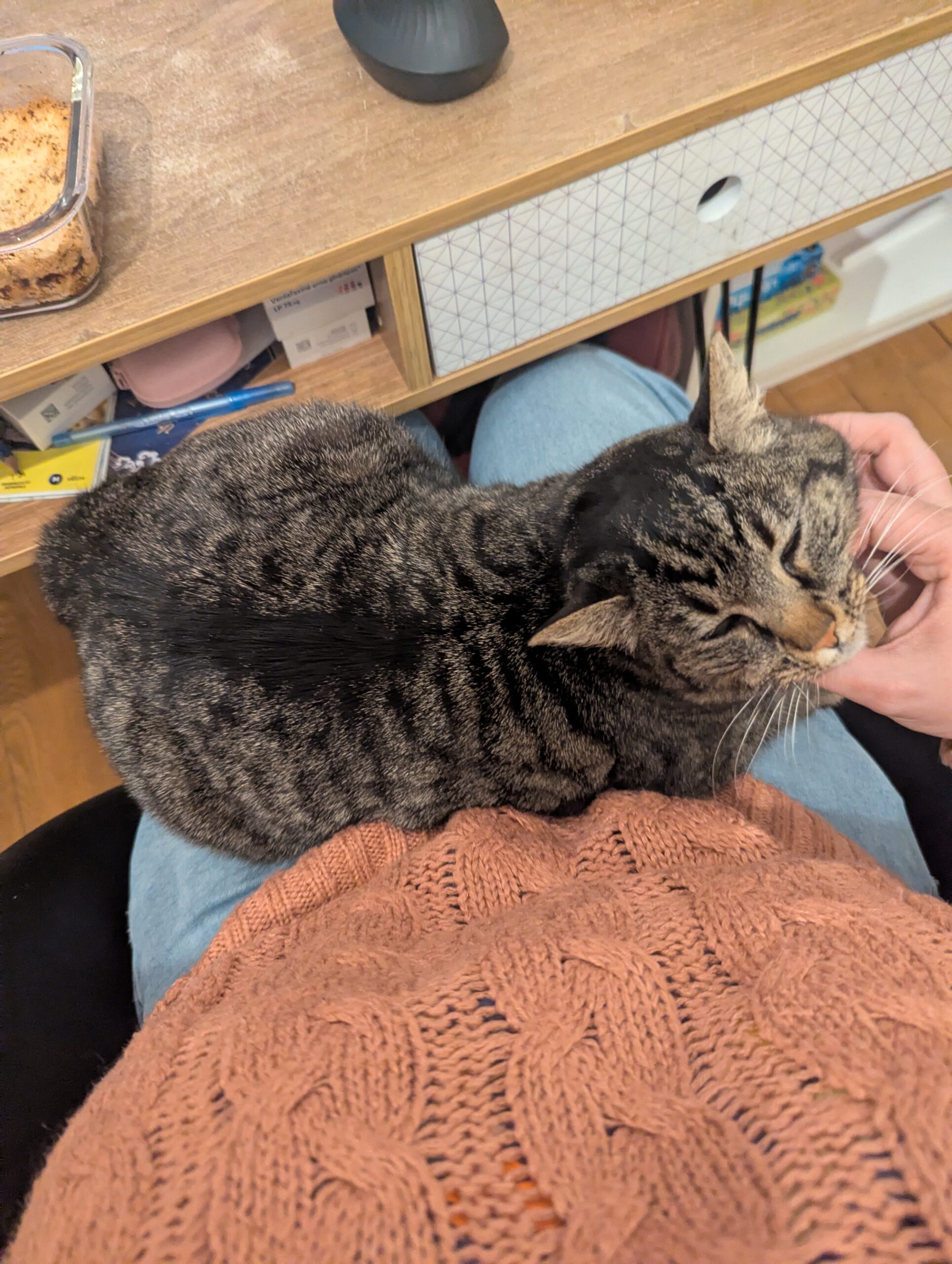 Elle va un peu mieux aujourd’hui, la fièvre à légèrement baisser grâce à l’antibiotique 😻