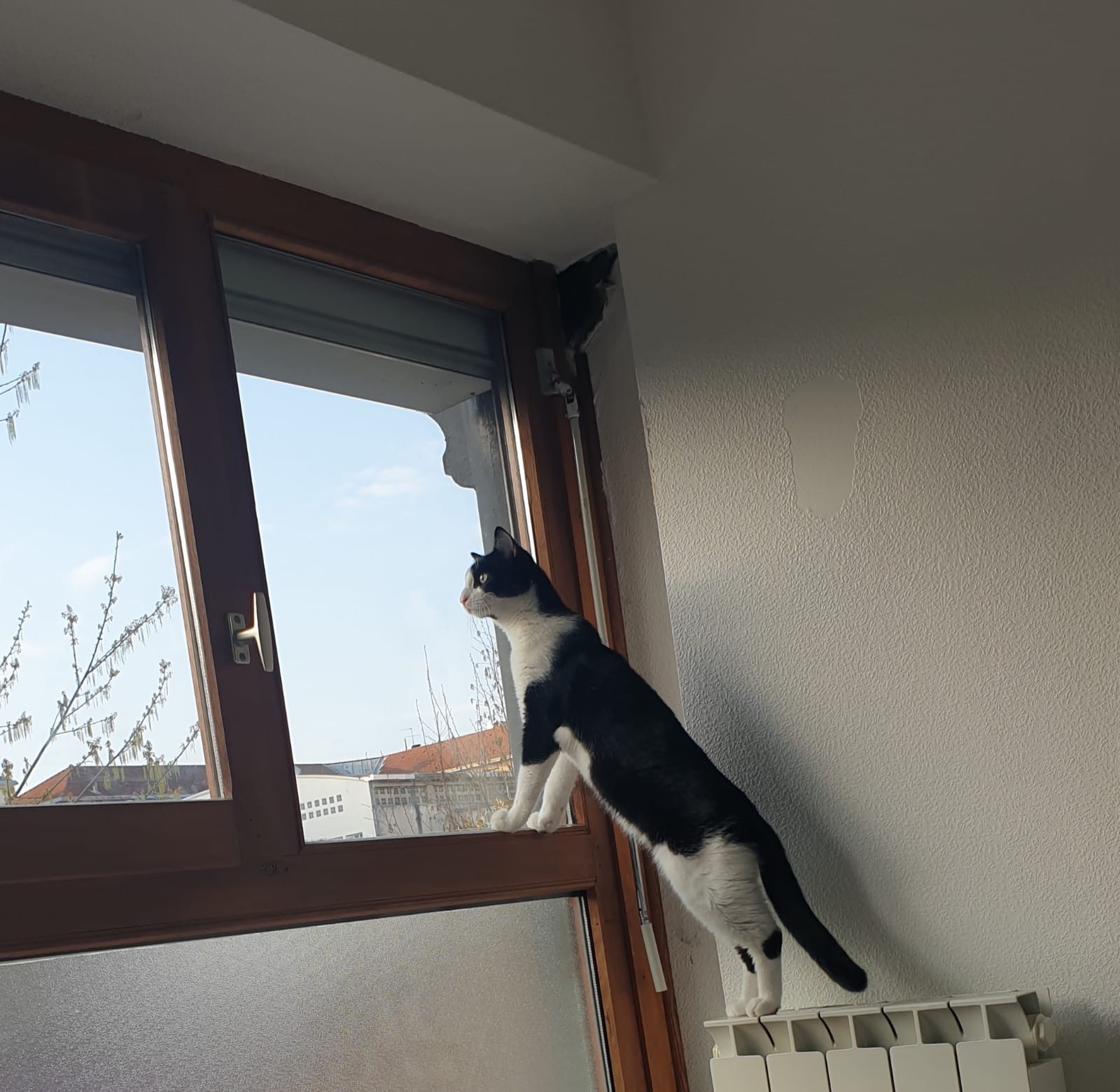 Incompatibilité : Enfants en bas âge, Oiseaux (il adore jouer avec les plumes et observer les pigeons par la fenêtre en se léchant les babines)