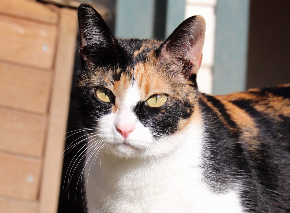 Noumy est une chatte d’un an au pelage écaille Noumy est une chatte d’un an au pelage écaille de tortue.
