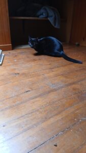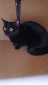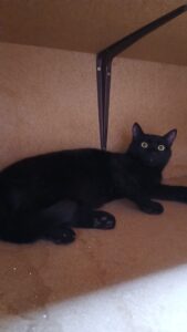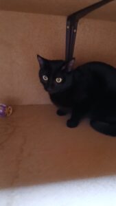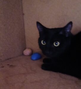 Curieuse et joueuse, elle adore grimper en haut des arbres à chats pour observer son petit monde, et peut passer de longs moments à s’amuser avec… des rouleaux de papier toilette vides ! Un rien l’amuse, pourvu qu’elle puisse se dépenser. Elle ne supporte pas d’être enfermée dans une pièce.