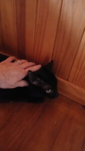 Assez réservée au premier abord, elle a besoin de plusieurs semaines pour accorder sa confiance aux inconnus. Avec de la douceur, de la patience et beaucoup de bienveillance, elle finit par s’approcher pour réclamer des câlins, et après quelques mois, elle saute sur vos genoux pour s’allonger et ronronner.