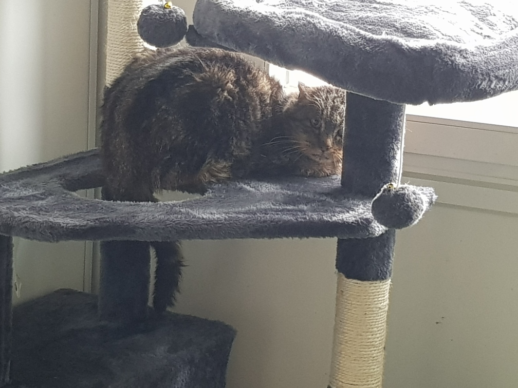 Grand chaton qui apprend encore à faire confiance aux humains, il faudra de la patience pour le faire sortir de sa cachette et gagner sa confiance.