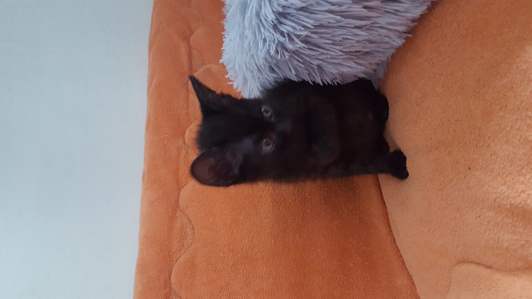 Une fois que vous l’avez ? Vous découvrirez un chat joueur et curieux, pro de la chasse aux boulettes de papier et de l’attaque acrobatique de fil, qui vous émerveillera de moult mouvements d’art martiaux de sa création. Une fois fatigué de ses prouesses, il aime dormir contre les jambes bien au chaud sur le lit. Il vient de découvrir le bonheur des caresses et s’y habitue encore (il faut y aller doucement et lui laisser le temps) mais en demande de plus en plus!