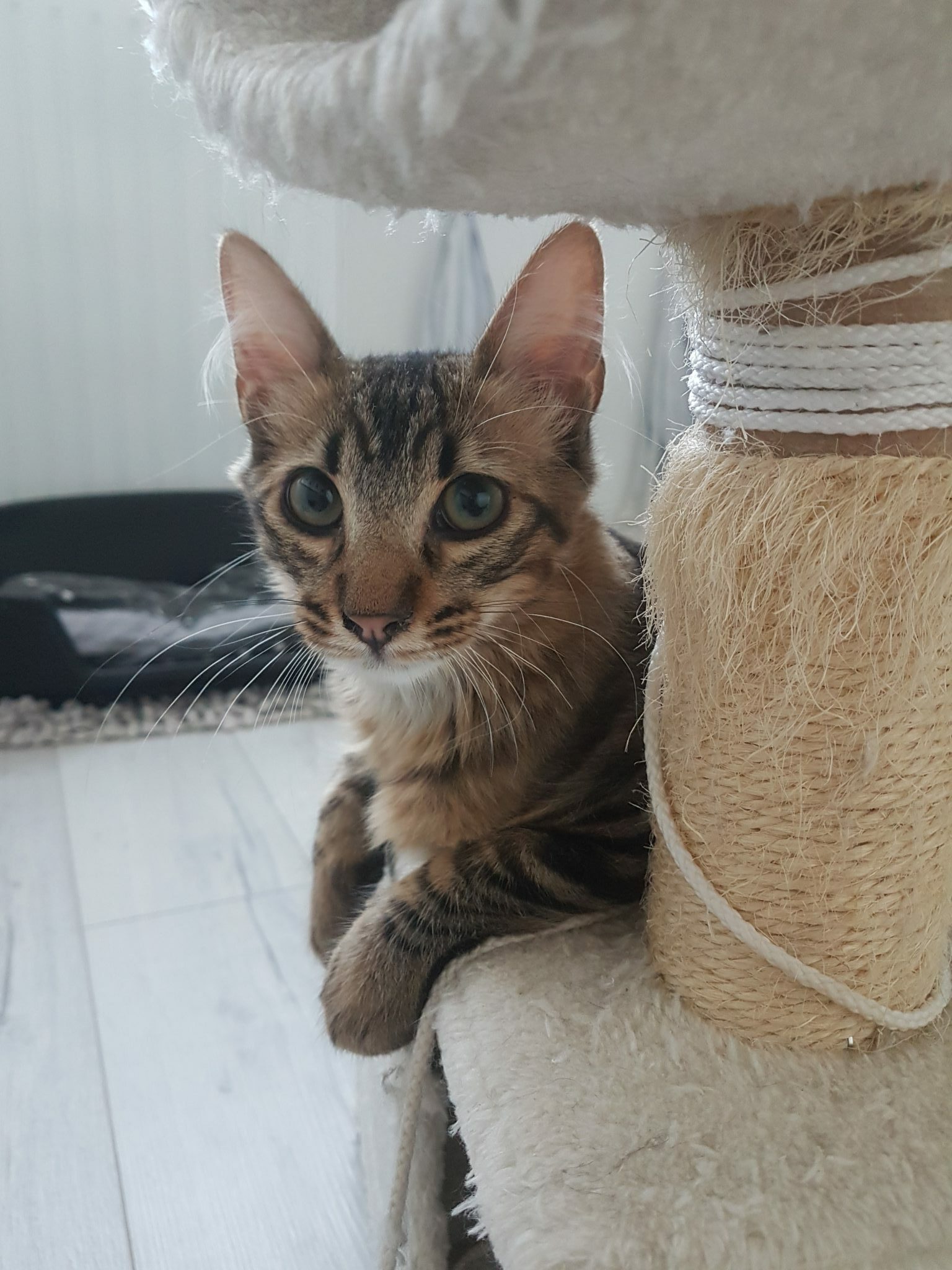 Bali est un magnifique chat noir au regard profond, né en 2024. Élégant et apaisant, il apporte immédiatement une présence douce et rassurante dans la maison.