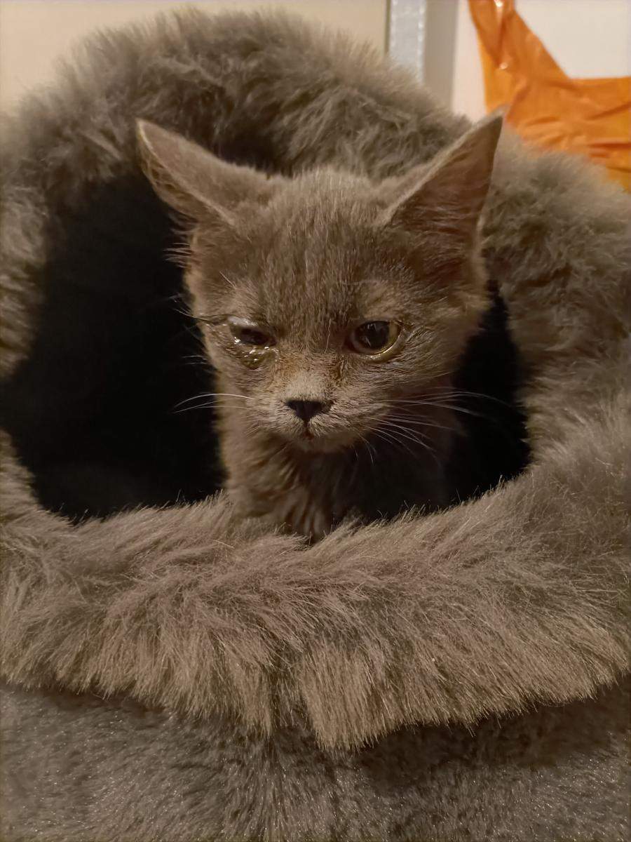 Trouvée blessée et souffrant d’une grave infec Trouvée blessée et souffrant d’une grave infection aux yeux, cette chatonne hyper sociable est enfin à l’abri. Un traitement est en cours pour tenter de sauver sa vue.