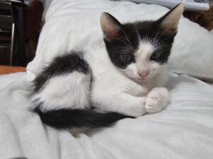Très peureux au début, mais avec un peu de patience et de douceur il a fini par montrer le bout de son nez. Apollon est un chat à présent très câlin, il cherche constamment le contact et viens sur vos jambes quand vous êtes poser sur votre canapé le soir devant la tv, il aime se faire caresser.