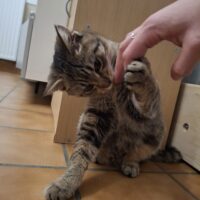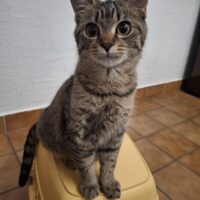 Curieuse et toujours en demande de caresses, elle nous suit partout et tourne dans nos jambes alors qu’elle ne nous connaît encore très peu.