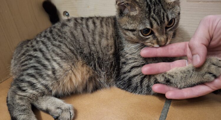 Aylin est une chatonne fraîchement arrivée à l’association et pourtant déjà très sociable.