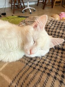 Brume est aussi une grande gourmande : au moindre bruit d’emballage, elle arrive en courant en pensant qu’un sachet de pâtée va s’ouvrir !