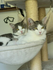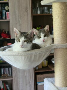 Charlie et Mimousses, Femelles grise et blanche, nées en juin 2025