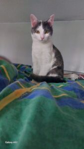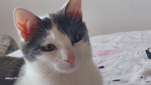 Assez timide, il est difficile de le porter, il lui faudra très peu de temps pour être un chaton adorable et calin.