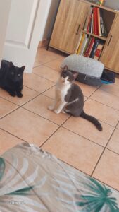 Gourmand et curieux, Grigri progresse chaque jour : il commence à se détendre, à étudier la présence humaine, l’inconnu est encore un peu terrifiant pour lui, et il est en bonne voie pour offrir bientôt de beaux ronronnements à ceux qui prendront soin de lui.