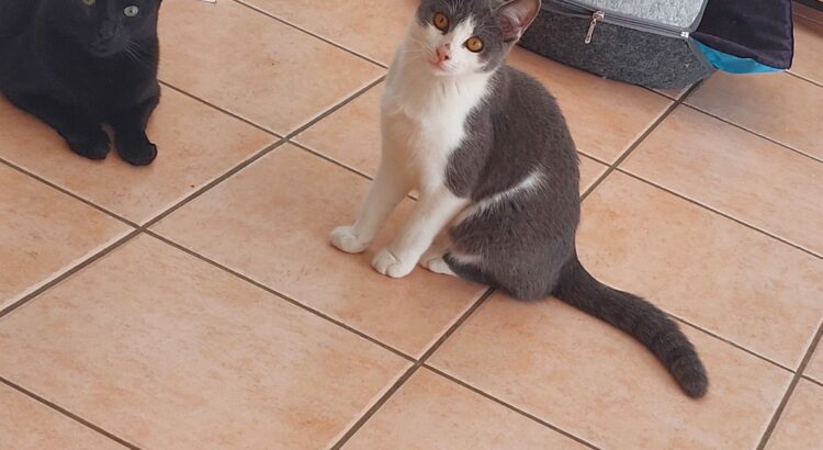 Grigri est un jeune chat blanc et gris, au regard doux et touchant. Encore craintif il a besoin de temps pour accorder sa confiance, mais une fois en confiance, il se révèle absolument adorable. Il s’entend très bien avec les autres chats et possède un pelage incroyablement doux, un vrai petit nuage à câliner.