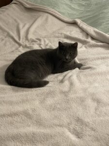 Grisette a été recueillie dans la rue à l’âge de six mois. Fidèle à son nom, elle arbore une robe entièrement grise.