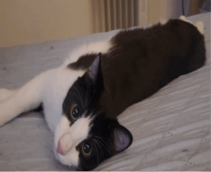 Je suis noire et blanc, j’aime bien feuler un petit peu vis-à-vis des autres chats mâles mais finalement, au bout d’un moment je m’en accommode. Et après je peux me coucher en tout sécurité près d’eux.