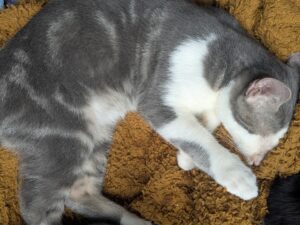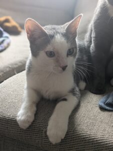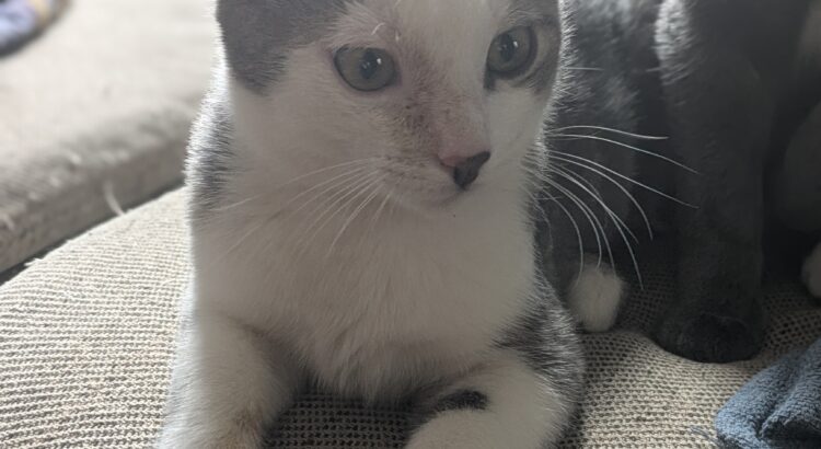 Kheops est un adorable chaton mâle gris et blanc né le 10 juillet 202