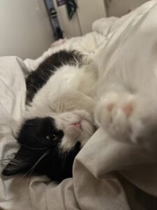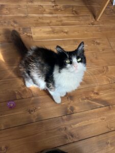 C’est un chat très adorable, qui apprendra à vous faire confiance avec un peu de temps jusqu’à devenir un p’tit pot de colle qui vous suit de partout. Luna à aussi un petit souffle au cœur à surveiller, mais rien de grave, juste besoin d’une grande respiration et la partie de jeux redémarre.