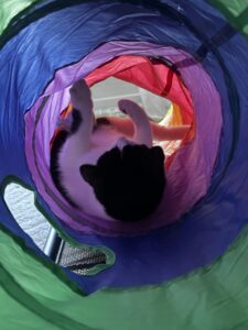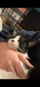 J’aime beaucoup jouer tant avec l’humain qu’en toute autonomie, me dépenser, grimper et par dessus tout les câlins! Je suis un vrai moteur à ronron, qui n’hésitera pas à venir se blottir sur vos genoux et dormir auprès de vous. J’émets encore quelques craintes lorsqu’on me porte dans les bras mais je suis de plus en plus à l’aise.