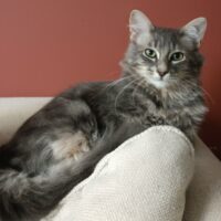 Cette gentille minette au début difficile à vécu deux ans dans un hôtel pour chats en Thaïlande et n’a malheureusement jamais eu de véritable foyer.